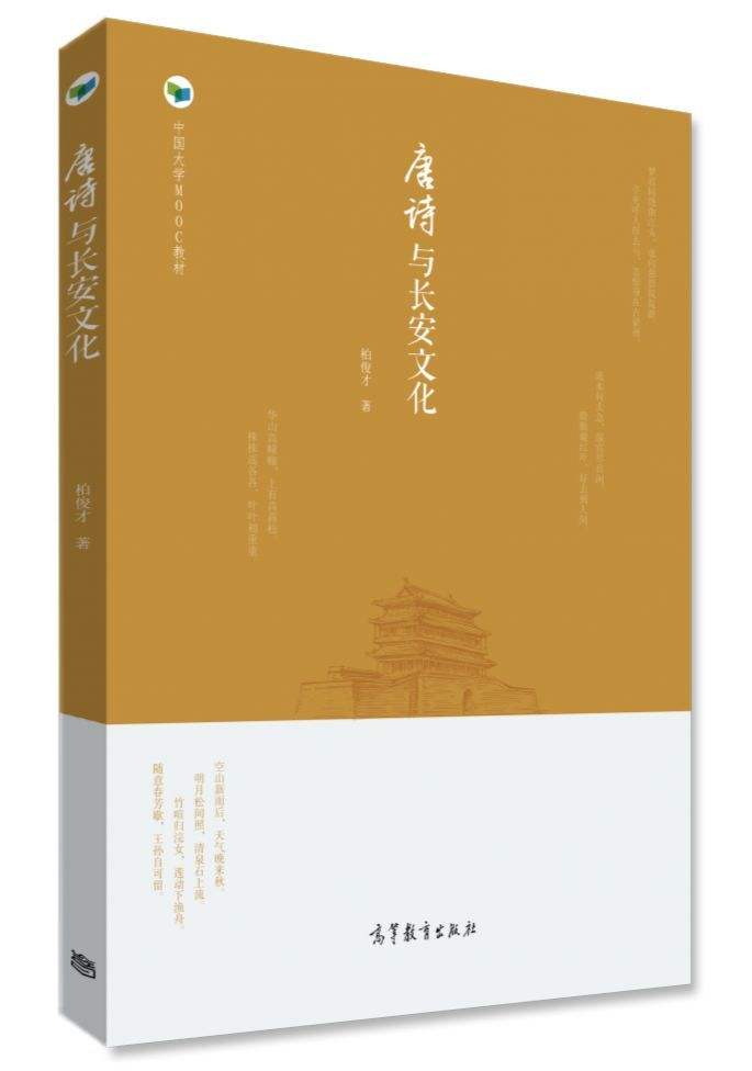 本书是同名慕课的配套教材。唐诗是中国古代诗歌的巅峰,也是中华民族最为灿烂的文化瑰宝。据统计,《全唐诗》、《全唐诗补编》中“长安”一词出现过一千四百余次,如果再加上“帝城”、“帝京”、“帝乡”“帝王州”、“皇都”、“九城”、“凤城”“上国”、“上京”、“京华”、“咸阳”、“咸京”、“秦京”等代称,以及长安城内道观、寺庙、风景名胜等,诗歌数量会更巨大。这门课程由这些有关唐代长安诗歌解读入手,分为爱情文化、政治文化、佛教文化、道教文化、科举文化、女性文化、酒文化、民俗文化、风景名胜、西域文化十个专题,让人们领略唐代长安文化辉煌灿烂的艺术魅力,增进文化自信,增强民族自豪感。该课程2018年5月起在中国大学MOOC网、智慧树等平台运行,同时该课程获批陕西师范大学“课程思政”示范课建设项目(2019年)、陕西师范大学校级一流本科课程建设项目(2020年)、陕西省精品在线开放课程(2019年)。