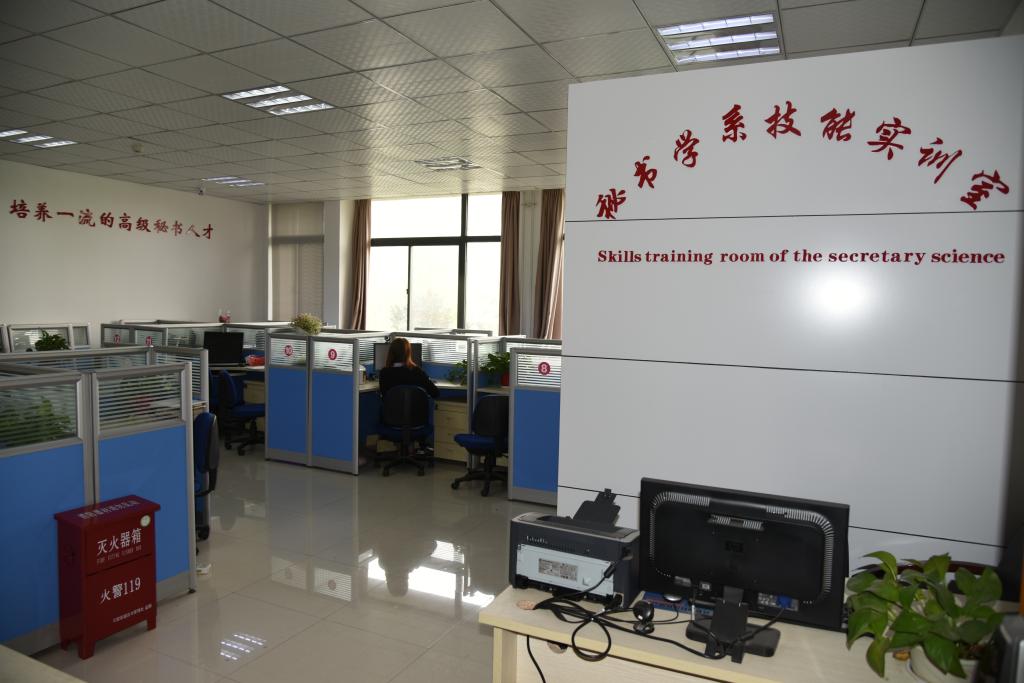 1.秘书综合实训室:秘书综合实训室主要训练秘书学专业学生的日常事务管理技能及秘书的写作技能,具体包括公文写作和文档管理等方面。通过实际模拟体验,使学生了解办公室办文工作的范围,并掌握相关事务的处理技能。