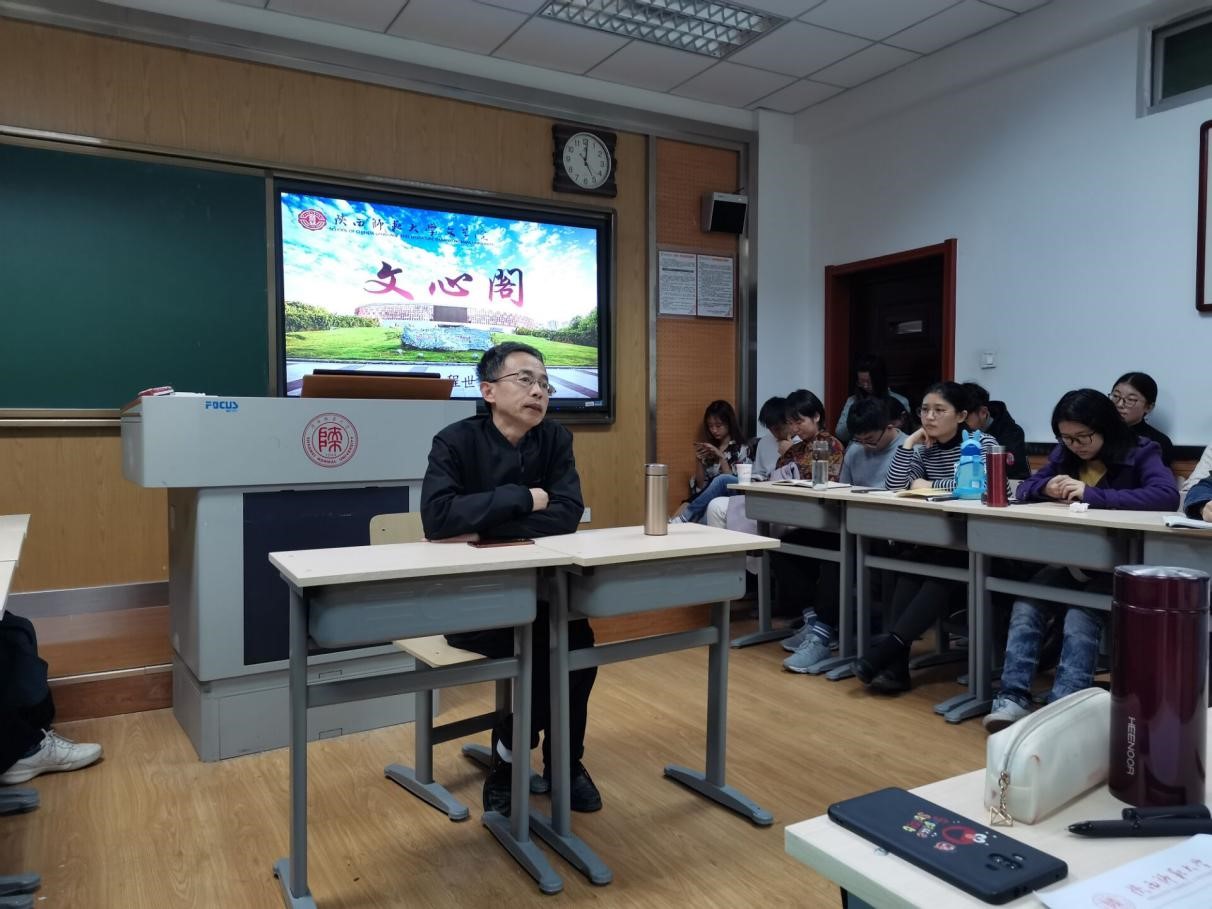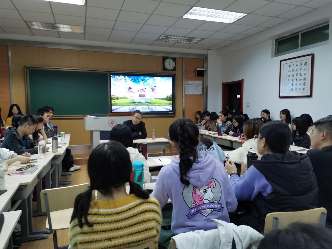 11月15日16:45,本学期第6期(总第238期)文心阁交流活动在文渊楼3115教室顺利举行。bevictor伟德官网教授程世和老师应邀参加本次活动。程老师以先秦文学为主要研究方向。在此次文心阁活动中,程老师结合自己当年的大学阅读经历,以经典阅读与自我精神成长为主题与同学们进行了分享与交流。