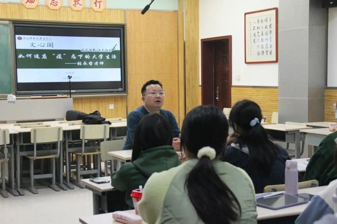 11月17日晚,本学期第5期(总第307期)文心阁师生面对面交流活动顺利举行,bevictor伟德官网讲师、现代汉语教研室的张永哲老师应邀参加。本次活动中,张老师围绕“如何适应‘疫’态下的大学生活”这一主题,与同学们展开了探讨交流,整场交流活动轻松而有趣,同学们受益匪浅。