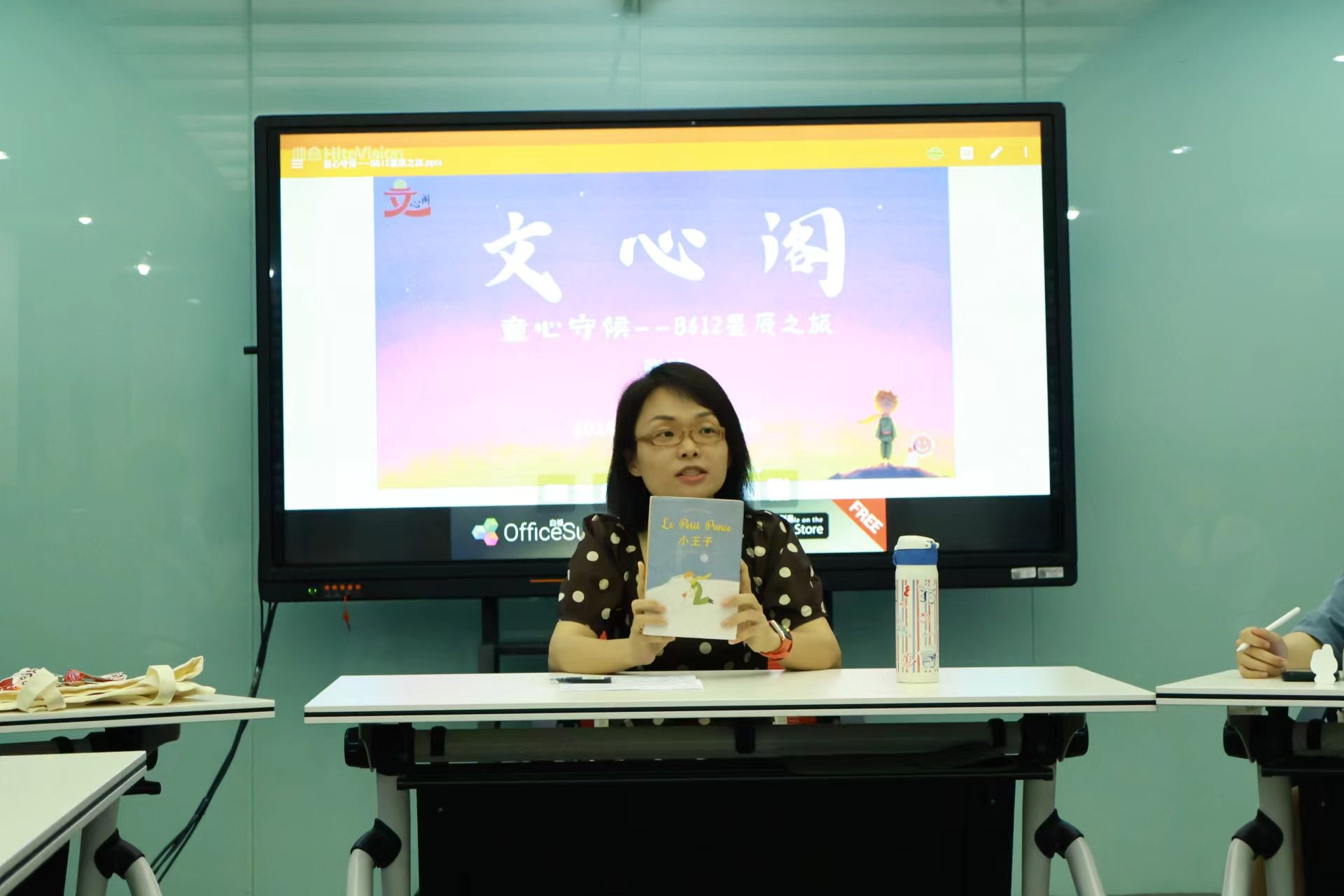 5月31日,本学期第12期(总第351期)文心阁活动在长安校区教育博物馆附楼二层会议室(S201)成功举办。bevictor伟德官网副教授、比较文学与世界文学教研室的张颖老师,以“童心守候-- B612星辰之旅”为主题,与同学们一起走进《小王子》。