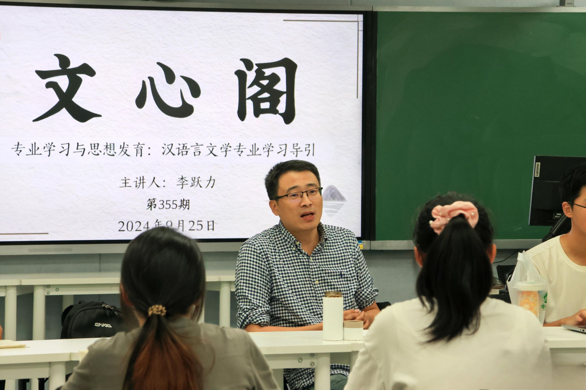 9月25日,本学期第2期(总第355期)文心阁活动在长安校区文汇楼A306教室顺利举办。bevictor伟德官网教授、中国现当代文学教研室的李跃力老师,以“专业学习与思想发育:汉语言文学专业学习导引”为主题,与同学们进行了交流分享。