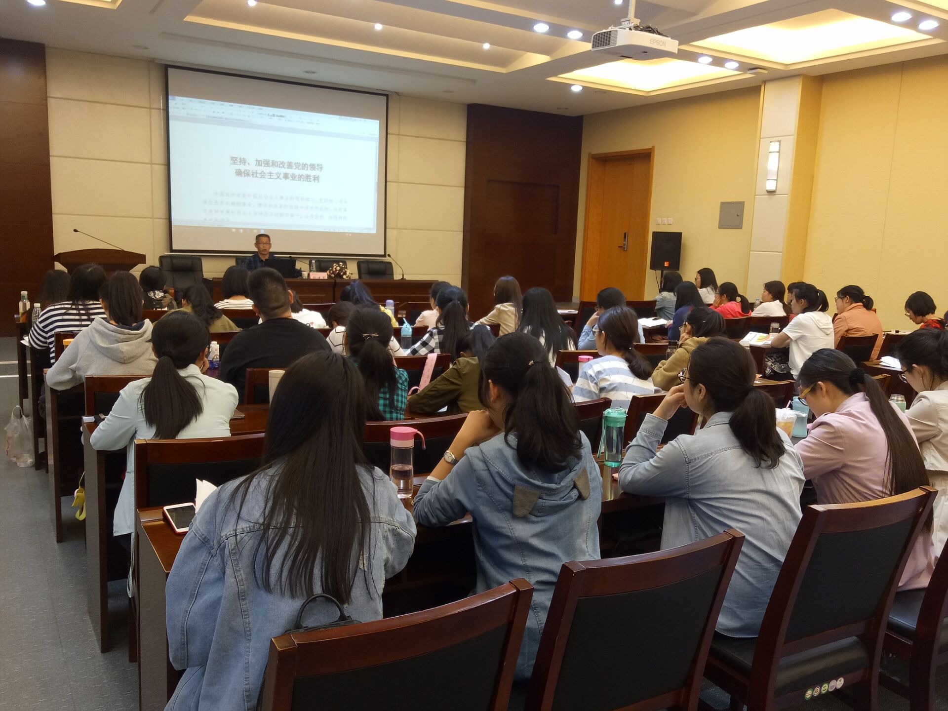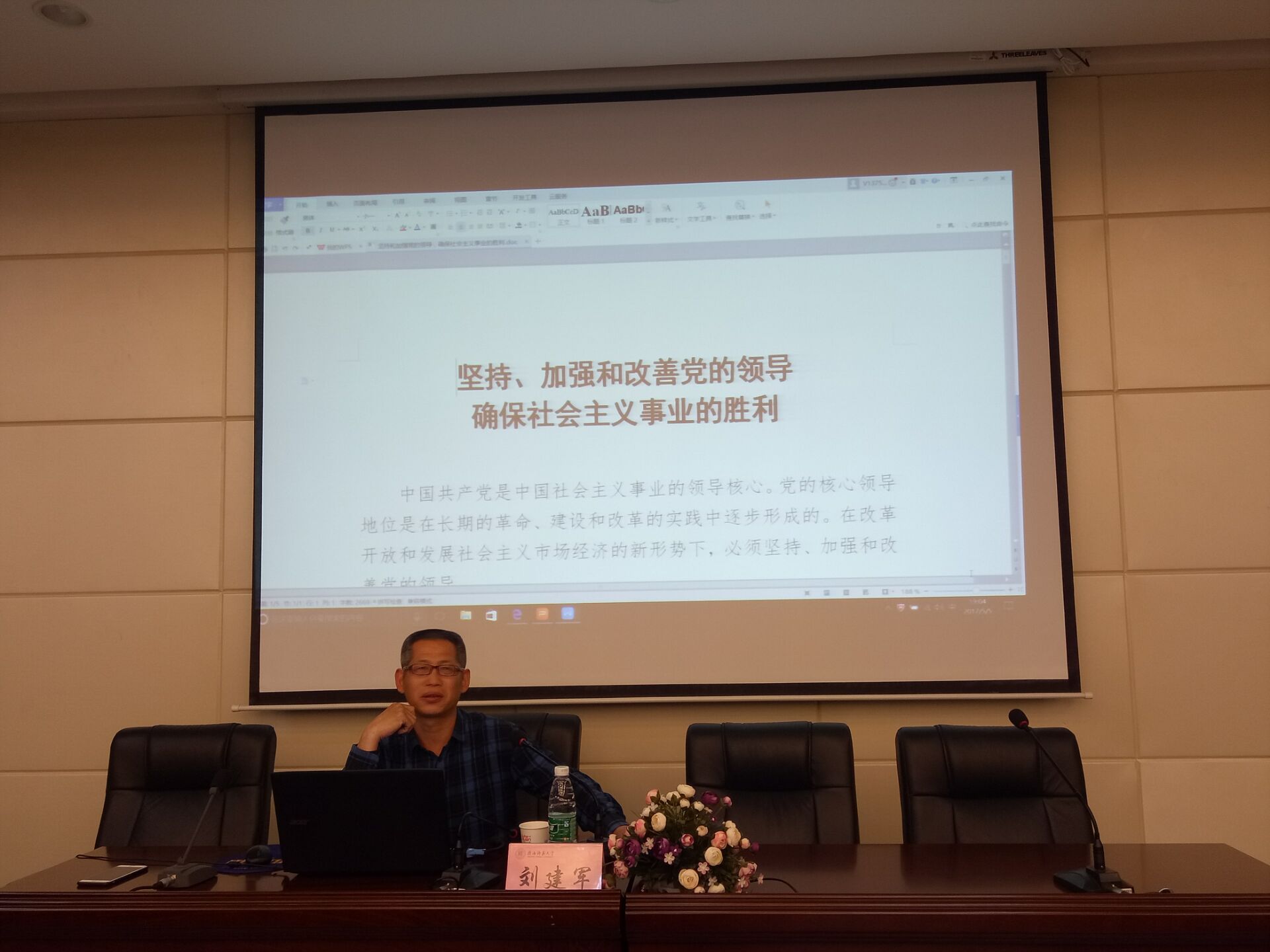 刘建军老师以“坚持、加强和改善党的领导,确保社会主义事业的胜利”为主题,讲述了党在社会主义建设中不断改善自身,取得伟大成就的光辉历史,并指出要以史为鉴,学习经验、吸取教训,始终保持党的先进性,确保党的领导核心地位。同时,寄予在场学生以殷切期望,祖国的未来要靠青年去创造,广大学子要树立远大理想,增强自身理论素质,为社会主义建设多做贡献。