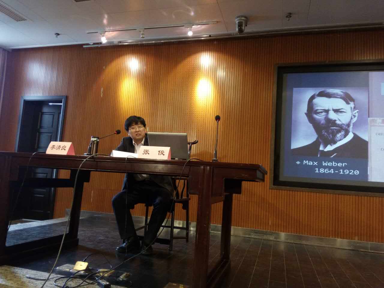 在近两个半小时的报告中,张俊老师对墨家与清教徒伦理及其与资本主义精神的关系做了深入细致的对比分析,指出墨家是诸子学派中的伦理思想最接近清教徒的,墨家同清教徒一样,都持某种入世的禁欲经济伦理:肯定现实逐利与财富积累的正当性,强调勤恳工作和节俭的禁欲主义。甚至墨家还有类似基督教上帝信仰与博爱教义的天志信仰与兼爱伦理主张。尽管如此,二者的经济伦理却存在不可跨越的质的区别。清教徒伦理以救赎为其信仰背景,通过“天职”确立起工作的救赎论意义,再把预定论造成的心理焦虑转化为工作与禁欲的精神动力,对现实的社会实践进行理性化的组织与规划。其中尤其是对经济活动的理性组织与安排,最终使自然财富转变为不断赚取利润的商业资本。这种经济理性主义构成资本主义精神的核心。墨家没有清教徒这种特殊的信仰文化,其主张力行、节用的禁欲经济伦理,追求财富的积累,其实最大理想也不过是“满足需求”,均富共享,实现其所谓民富国安的现实政治诉求而已。这种经济传统主义,并不可能与资本主义精神产生重要关联。在提问环节,张俊老师与学者和同学们就讲座内容以及中国传统社会的政治伦理问题进行了深入广泛的交流对话。