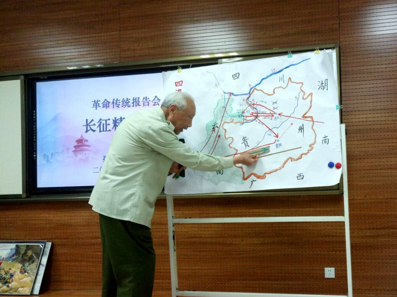 报告会最后,杨清源教授指出,红军之所以能够在敌我比例悬殊、没有后方的情况下,由走投无路的撤退到走向全国的胜利,正是因为红军战士有着坚定的革命理想和对共产党无上的忠诚。长征精神就是一不怕苦,二不怕死的精神,就是百折不挠百折不悔,不屈不挠的精神,就是敢于战斗,敢于胜利的精神,就是顾全大局,精诚团结的精神,就是为国为民,牺牲奉献的精神。