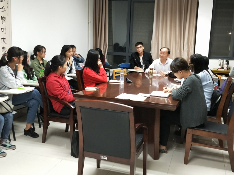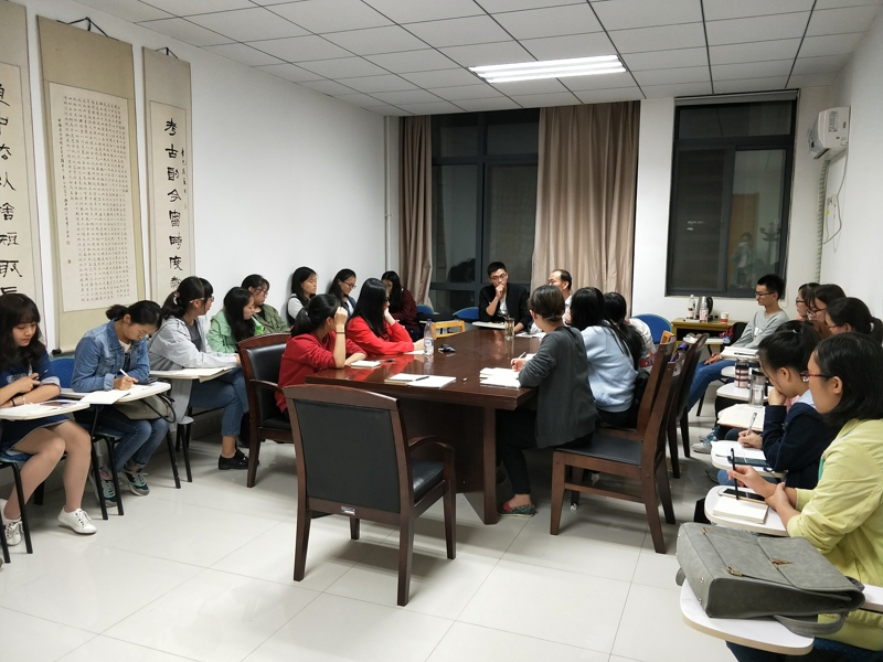 (通讯员:燕飞依铭)9月27日,bevictor伟德官网杜学敏老师应同学们的热情邀请参加了长安校区2017-2018学年第一学期第二次(总第193期)文心阁师生交流活动,本期活动在文汇楼bevictor伟德官网文心阁举办,涉及了与文学学习相关的多个话题。杜学敏老师的专业研究方向是文艺学,他在美学领域的研究也颇有建树。杜老师语言严谨而又不失活泼,深刻而又不失幽默,饱含了对同学们的关注和关怀。