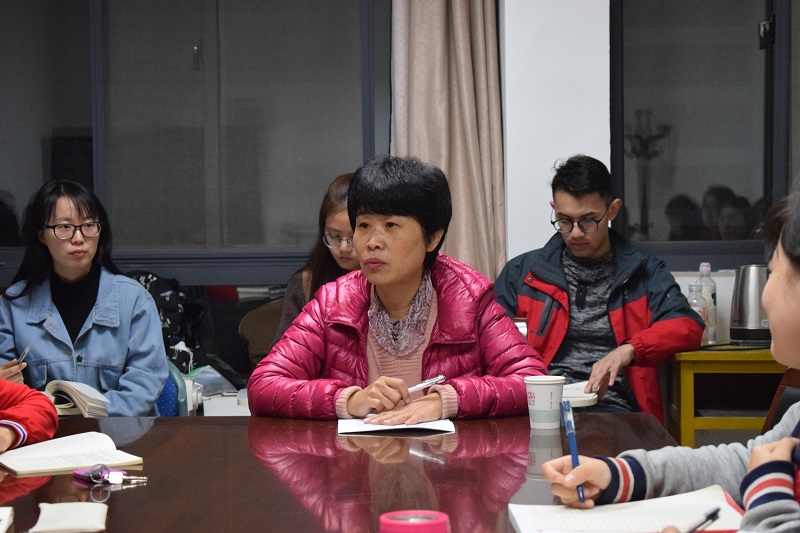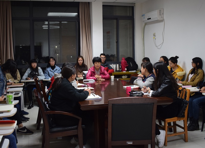 本次活动由分享与交流两部分内容组成。首先,蒋老师通过分享自己早年的读书经历强调了文学对人生的重要意义,并且指出,以往,尽管文学与生活密切相关,但它的价值和意义却经常被忽视甚至否认。随着时代的发展,文学的学科地位的不断提高,人们开始越来越多地关注文学。这时,我们应该意识到,在浩如烟海的文学作品中,中国古代的文学经典经过了几十代甚至几百代读者的选择、解读和丰富,留下的作品足以代表我国文学在各类文体中的卓越成就,更应该被关注与传承。其次,蒋老师认为阅读和积累对学生而言十分必要。蒋老师说在物质匮乏的年代,阅读作为精神食粮,可以让人在困顿时感受自然与人生的美好。而在物质极大丰富的今天,人们越来越耽溺于物质享受,更需要以阅读填补精神的空白;只有持续广泛地阅读,并将开卷有益的积累融入血肉,才能让身处象牙塔里的学生站在更高的平台上看到更加开阔的风景。“你所读过的书都将成为支撑你走得更高更远的垫脚石”,蒋老师这样说道。再次,蒋老师分享了自己读书的方法。她认为读者应该依据自己的兴趣或者工作需要有选择地阅读,而那些跨越时空的经典应当成为阅读的首选,因为它们包含了先贤们丰富的创作经验和处世智慧。当然,阅读时不仅要做到眼勤,还要做到手勤,中文专业的同学尤其应该注意及时摘抄独到的观点、精妙的比喻和优美的表达,为自己将来的学习和工作积累经验;另外,阅读过程中,还要注意总结和提炼作品的观点,以便形成宏观的认识。蒋老师还分享了自己的几篇读书笔记,她的笔记详实严谨,感情充沛,大家都被她敏锐的洞察力和“精华欲掩料应难”的才华所折服。分享结束后是师生交流环节,同学们纷纷提出自己在学习和阅读过程中产生的各种疑惑,蒋老师认真聆听并一一给予了详细的解答。
