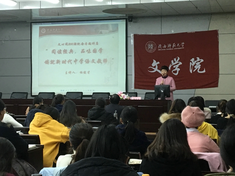 (通讯:张可艳)11月22日晚7点,bevictor伟德官网文心阁师生交流活动第200期专题讲座在图书馆报告厅举行,bevictor伟德官网博士生导师、教育部新世纪优秀人才柏俊才老师受邀做了题为“阅读经典,品味国学,铸就新时代中学语文教师”的专场讲座报告,200多名硕博研究生、本科生到场参加,现场座无虚席。 报告开始之前,院党委副书记李斐老师首先主持了文心阁200期讲座的纪念仪式。院党委书记孙清潮老师发表了热情洋溢的讲话。孙书记全面地回顾总结了文心阁的创办历程,他指出,文心阁开创了bevictor伟德官网师生面对面交流的先河,通过师生之间的沟通和对话,启迪学生心智,解决学生问题,促进学生健康发展,对学院乃至学校的教学和管理工作发挥着重要作用。孙书记对文心阁今后的发展提出了建议和要求,希望文心阁在加强一流学科建设的新形势下发挥更大的作用。 纪念仪式结束后,文心阁200期讲座报告正式开始。柏俊才老师的讲座结合现阶段国学的发展状况和十九大报告中关于文化自信、民族自信的内容,引出当今中学语文教师应加强传统文化修养的话题,随后进入讲座的主体部分。柏老师首先对“什么是经典”做了解释,他列举了“五四”以来几位国学大师推荐的经典书目,如胡适的《中学国故丛书》、梁启超的《最低限度之必读书目》、顾颉刚的《有志研究中国史的青年可备闲览书》等,并对书目的特点和内容作了详细的解读。关于“怎样阅读经典”,柏老师举隅历代大家的经典读书方法,从孔子“思、问、习”相结合的读书法开始,分别介绍了陶渊明的“不求甚解”读书法,朱熹的“二十四诀”读书法,唐彪的“五类四别”读书法,蒲松龄的“五要”读书法和胡适的“四到”读书法等。“古人学问无遗力,少壮功夫老始成”,柏老师建议大家向古人学习,坚持刻苦读书,为未来的职业生涯和人生旅程打好基础。讲座最后的交流环节中,现场同学踊跃发言,柏老师耐心解答了大家的问题。他风趣幽默的语言和高屋建瓴的观点都让现场同学感慨不已,赞叹不绝。 讲座结束后,同学们向柏老师送上鲜花表达感谢!柏老师再次鼓励大家多读经典,钻研国学,汲取智慧,品味人生,并预祝文心阁活动越办越好。至此,文心阁200期专题讲座圆满结束。