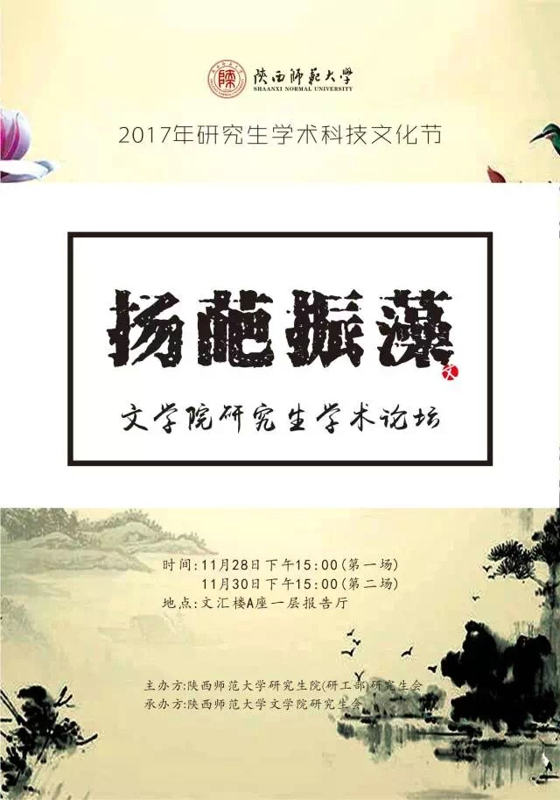 论坛首场由2015级语言学及应用语言学硕士研究生韩志周担任主持,邀请中国古代文学博士研究生、陕西理工大学bevictor伟德官网副院长宫臻祥副教授,比较文学与世界文学博士研究生、陕西科技大学翻译与文化传播研究所所长乔现荣副教授,中国古代文学博士研究生施文斐,校研究生会主席文旭升担任点评嘉宾。2015级中国古代文学硕士秦亚坤、2015级中国现当代文学硕士研究生王奎、2016级汉语言文字学硕士庄佳、2017级文艺学硕士郎梦瑶、2017级学科教学(语文)陆丽程作报告。论坛第二场由2015级文艺学硕士研究生瞿慧主持,邀请我院2017级本科生辅导员候立,2016级本科生辅导员范虹鹭,文艺学博士研究生、内蒙古河套学院李雪莉,比较文学与世界文学博士研究生秦崇文,担任嘉宾。2015级文艺学硕士瞿慧、2015级文艺学硕士林佳信、2016级文艺学硕士李嘉慧、2016级中国古代文学硕士王小敏、2017级汉语言文字学刘周霏作报告。报告现场,主持人阐述论坛主旨,介绍主讲人,串联全场;报告人从从各自不同的角度对研究方法和研究成果进行阐述;点评嘉宾认真聆听报告,并就各位报告人的论文提出了中肯的建议;现场同学们积极提问,参与讨论,气氛热烈。