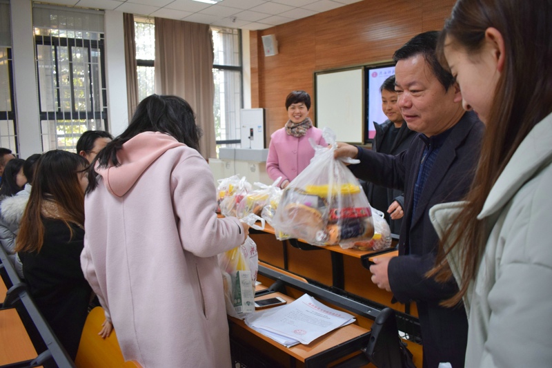 首先,孙书记对到场的同学进行了勉励,并告诫同学们要做到诚信考试,勿碰红线,建议大家制定目标,有计划地进行复习,劳逸结合,适当休息,调整好考试状态。同时鼓励同学们利用一流学科建设的全新优势,全身心的投入到考试当中去。紧接着,李斐老师做出了几点温馨提示:考试前准备好所需要的文具用品和必要证件,注意时间的合理分配,条形码与个人信息的正确填涂,以及对于考场环境的及时熟悉等等。最后,张荣华老师结合自己的亲身经历针对考研各科目提出相应建议,提醒同学们注意十九大习近平新时代新思想经典论断,英语作文模版回顾等复习重点。随后,老师们为考研学生发放了考前营养食品,以及涂卡铅笔,橡皮,尺子等考试用品。至此,本次动员大会圆满结束。