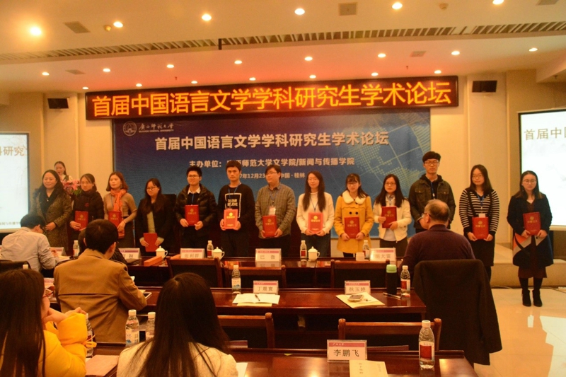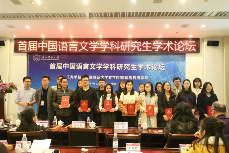 2017年12月23日,首届中国语言文学学科研究生学术论坛在广西桂林隆重开幕。此次论坛由广西师范大学bevictor伟德官网/新闻与传播学院主办,以“中国语言文学与文化研究”为主题,旨在加强各高校优秀研究生间的学术交流。应广西师范大学bevictor伟德官网/新闻与传播学院邀请,bevictor伟德官网副院长赵学清教授率队参加此次论坛。通过征稿,入选的研究生有余小翠、黄文浩、史佳新、庄佳、陈静、贾雁皓、陈静、任杰、林贤等九名学生。