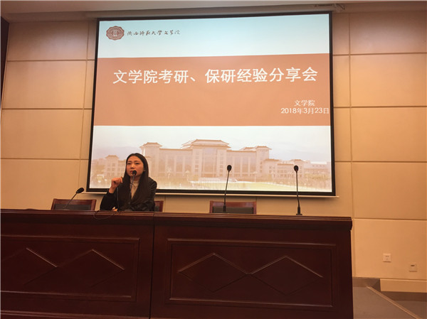 (通讯员:王红丽)为促进学院学风建设,创造良好学习氛围,增进我院2015级同学对考研、保研相关信息的了解, 3月23日下午,我院2015级辅导员程海峰、秦亚坤两位老师在长安校区文汇楼A段111会议室组织举办了考研、保研经验分享会。活动邀请了2014级四位保研成功的本科生和三位2017级研究生,她们到场和大家分享了成功经验,交流了应试方法。