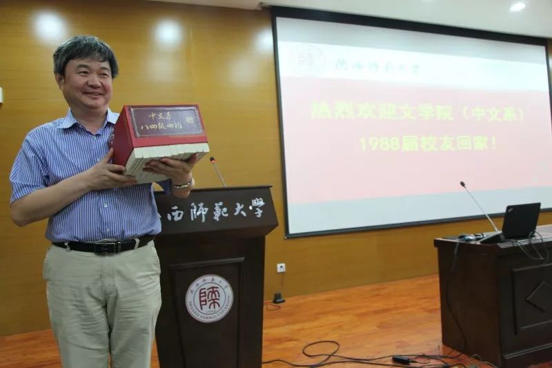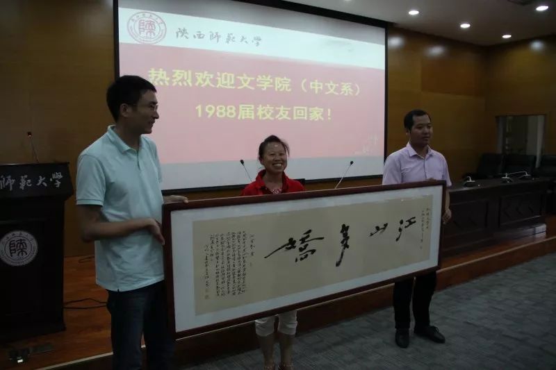 发言完毕后,报告厅响起了久久不息的掌声,气氛欢欣热烈。在这样的气氛中,中文系1988届毕业生向bevictor伟德官网和老师赠送纪念品。