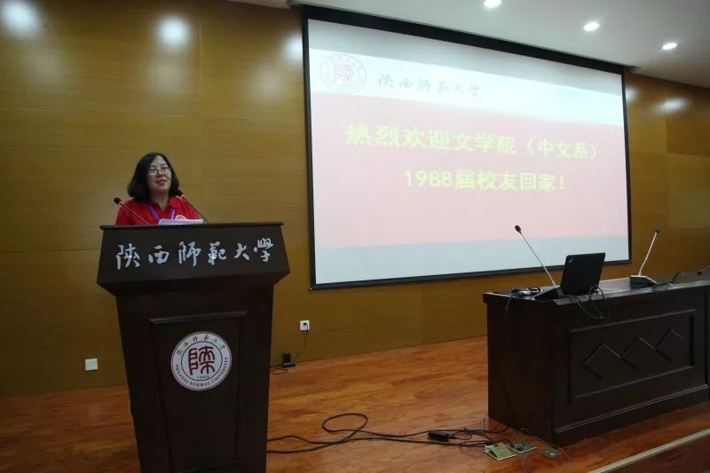 在此之后,四位1988届学生代表上台发言。“感谢”与“祝愿”是他们共同的主题,“回忆”与“怀念”是他们不变的旋律。 他们感谢老师呕心沥血的培养和孜孜不倦的教诲;他们感谢师大优良的学习环境和扎实严谨的学风;他们感谢时代给与的精神文化的幸福感。他们也许下祝愿。祝愿母校发展振兴、祝愿老师长寿安康、祝愿同学平安幸福。他们说:“不管我走到哪里,不管做什么工作,师大中文系,始终是我的根,始终牵着我的魂。”