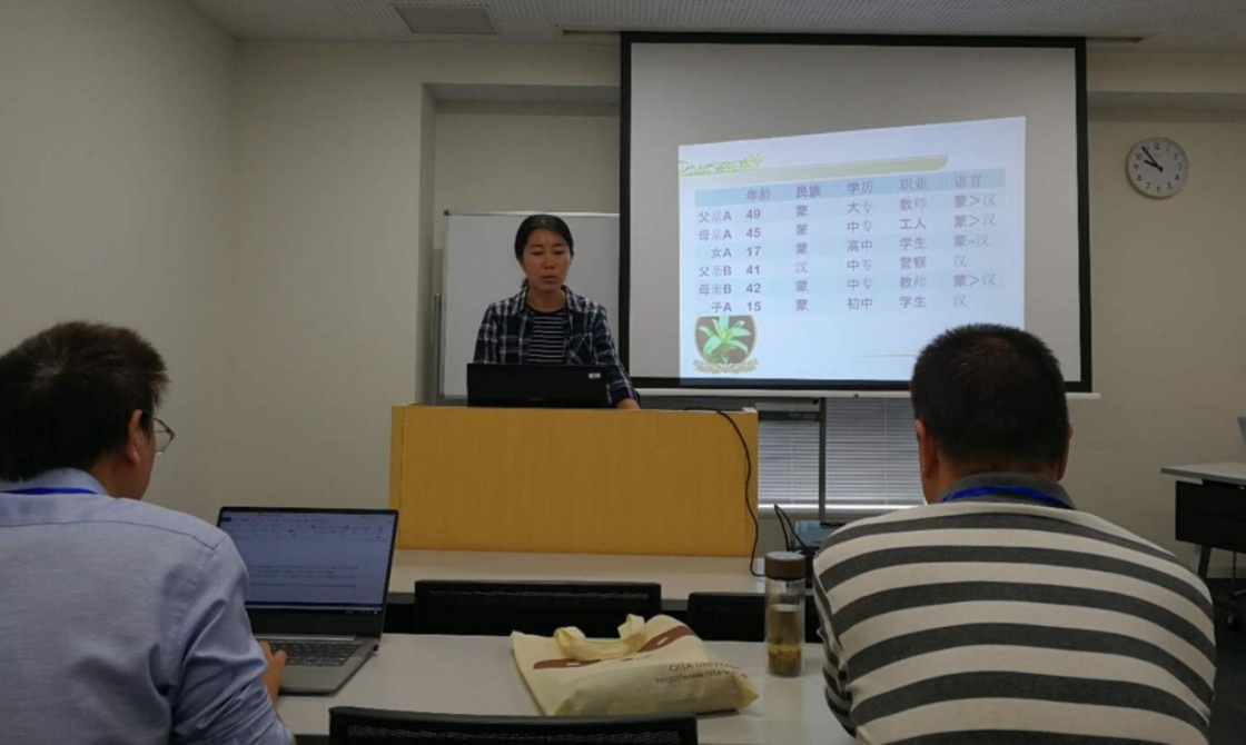 王跃平博士生报告了《语言选择的多维视角——以蒙古族中学生语言使用状况为例》,以社会语言学理论为出发点,通过实证研究,描写分析了语言选择的条件、成因、类型、特征及结果。