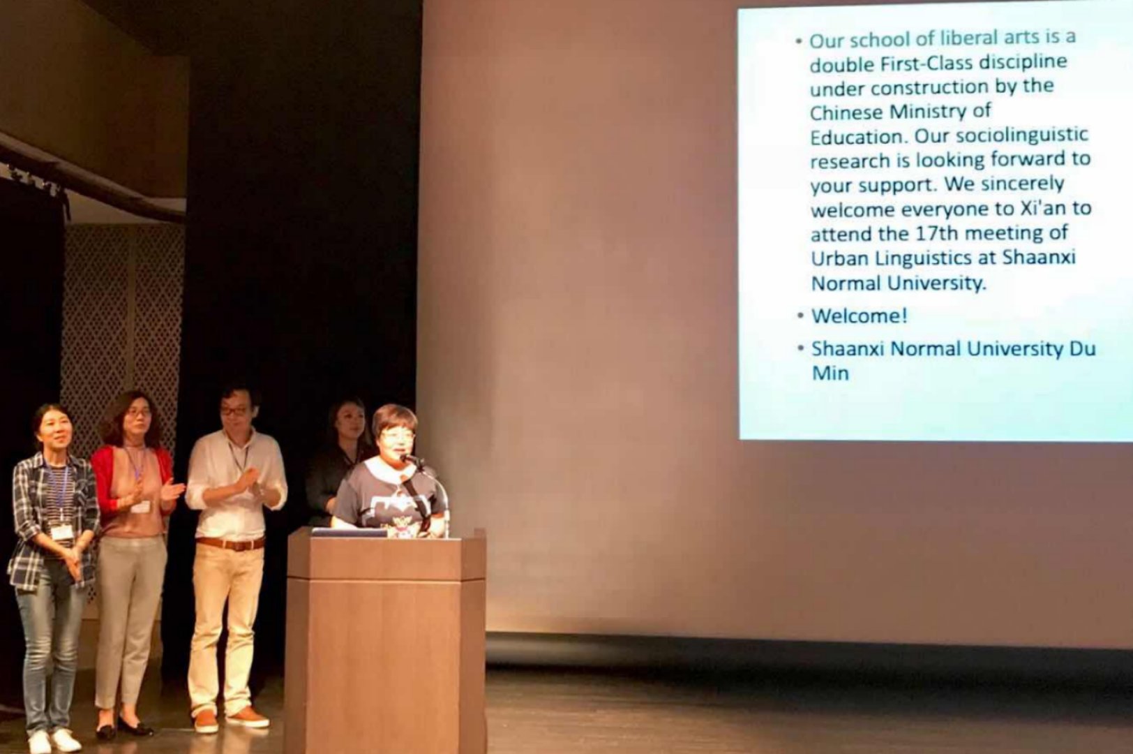 杜敏教授向各国代表隆重推荐了古城西安,并介绍bevictor伟德官网一流学科建设的基本状况,诚邀国内外语言学及应用语言学专家、学者来bevictor伟德官网参加会议。我们将竭尽全力加强和促进社会语言学、城市语言学等领域国内外的学术交流与合作,及时了解国内外相关领域的最新研究动态和学术前沿,推进学术不断发展和研究生教育的国际化。