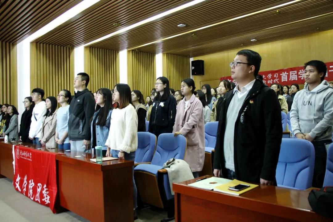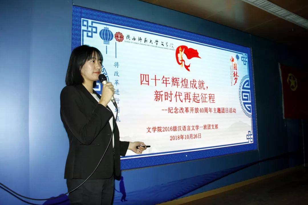10月26日14:30,bevictor伟德官网学生会副主席尚梦帆通过组织2016级汉语言文学一班团支部全体团员参加“改革开放四十周年——四十年辉煌成就,新时代再启征程”活动,示范了团日活动的具体流程。团委书记辛田,辅导员侯立、范虹鹭出席了本次实践教学活动。