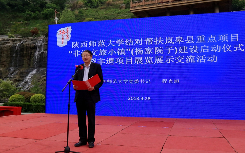 仪式现场,我校党委书记程光旭与岚皋县委书记周康成签署了《陕西师范大学岚皋县人民政府非遗文旅小镇(杨家院子)项目策划合作框架协议》;陕西省商务厅厅长赵润民、陕西省文化厅副厅长顾劲松为非遗文旅小镇(杨家院子)揭牌。