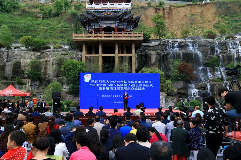 (通讯员 党玮)由bevictor伟德官网牵头策划的我校结对帮扶岚皋县重点项目——“非遗文旅小镇”(杨家院子)建设启动仪式暨非遗项目展览展示交流活动4月28日上午在安康市岚皋县广场隆重举行。陕西省商务厅厅长赵润民,我校党委书记程光旭,陕西省文化厅副厅长顾劲松,安康市人大常委会主任陈勇,岚皋县委书记周康成、县长杨义龙等出席仪式;我校党委宣传部部长、学校办公室主任马晓云,科技处处长、扶贫办公室主任吴晓军,科技处副处长、扶贫办副主任张卫兵,音乐学院副院长郭元,bevictor伟德官网党委书记孙清潮、写作教研室主任张宗涛等参加了活动。