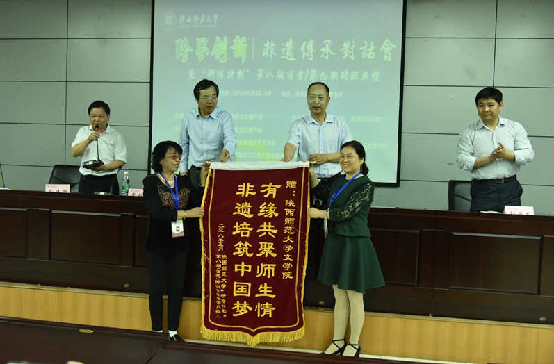 陕西省文化厅副厅长顾劲松,我校副校长党怀兴出席对话会开幕式、闭幕式,对bevictor伟德官网近年来在非遗传承发展方面取得的显著成绩给予充分肯定,并对中国语言文学在建设世界一流学科的过程中与社会各界协同创新寄予了厚望。闭幕式上还举行了非遗传承人群“研培计划”第八期面花培训班结业仪式和第九期木版年画培训班开班典礼。顾劲松、党怀兴向第八期面花班学员颁发了结业证书;面花班学员向学校赠送了锦旗。