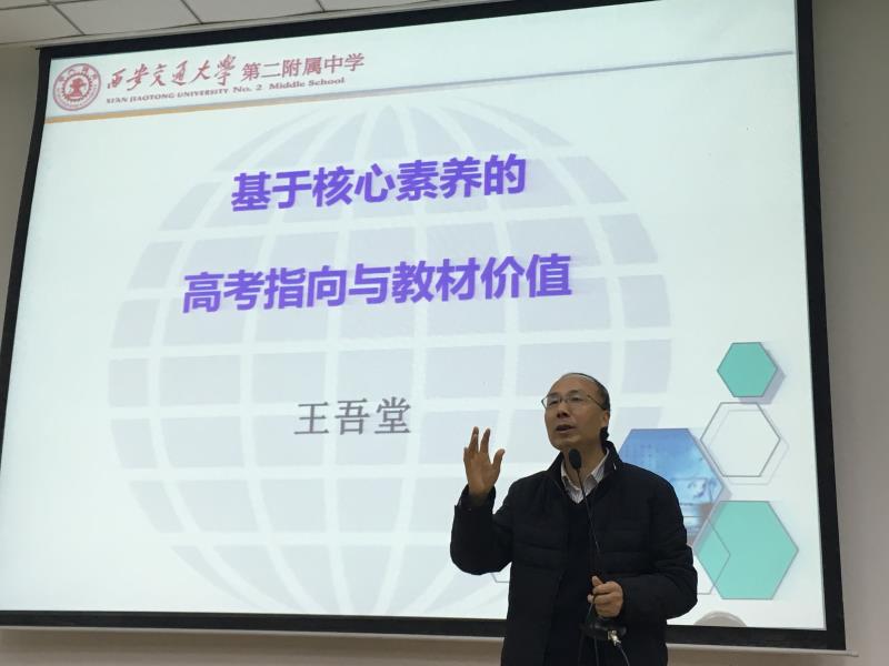 本次“‘文心’语文名师大讲堂”第七讲邀请了西安交大二附中教研主任、中学正高级教师、陕西首批名师、陕西省人才计划支持人才王吾堂老师主讲。本讲主题为“基于核心素养高考指向与教材价值”。王吾堂老师提出教师应从明确教育方向和高考指向,延伸向明确教材价值和教学智慧。
