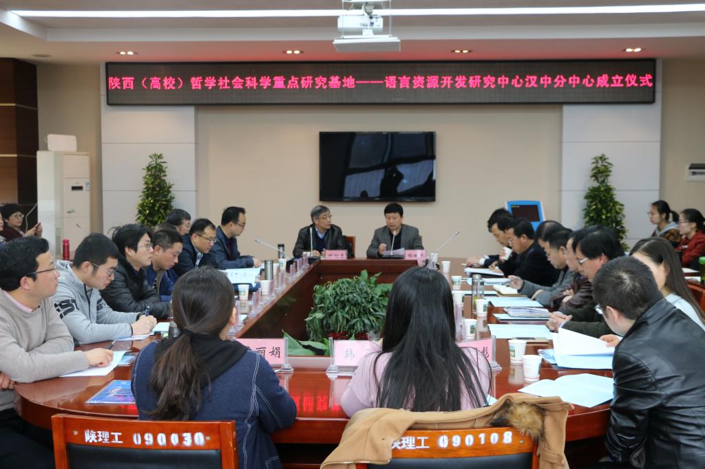 (通讯员:侯治中)3月23日上午,陕西(高校)哲学社会科学重点研究基地——语言资源开发研究中心汉中分中心在陕西理工大学成立。来自我校、陕西理工大学、西安外国语大学、西安石油大学、延安大学、西藏民族大学、陕西中医药大学、渭南师范学院、榆林学院等9所高校的30余位专家学者出席了成立仪式。活动由语言资源开发研究中心副主任柯西钢教授主持。