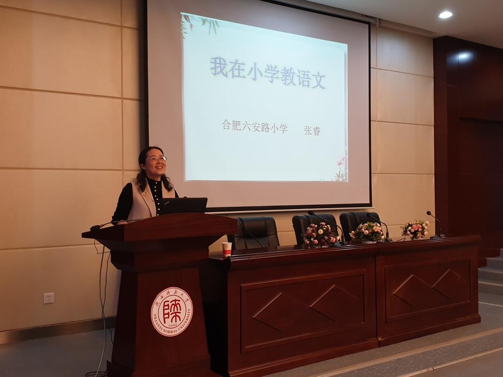 30日上午,张睿老师作了题为《我在小学教语文》的讲座。讲座中,张睿老师以常见的优秀教学模式及成功案例为背景举例说明“自育自学”型课堂的优势所在,紧接着分享了自己的教学案例,并就教学上教师应做到尊重表达、尊重过程、尊重课堂等十点要求的必要性进行了具体阐述。