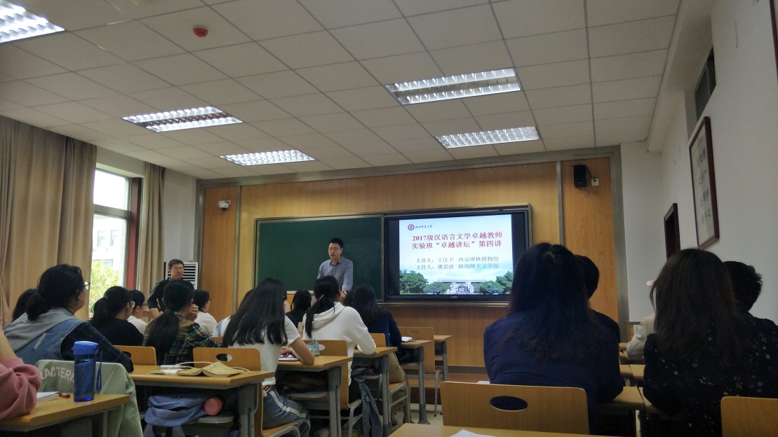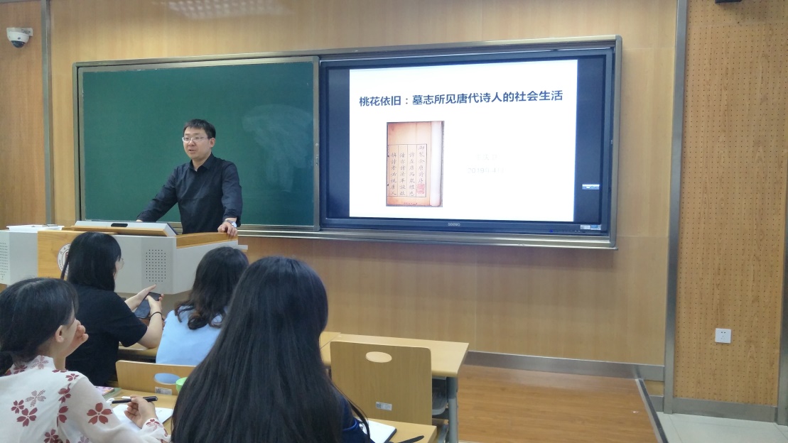 (通讯员:罗琼)2019年4月24日,2017级汉语言文学卓越教师实验班“卓越讲坛”第四讲在长安校区文渊楼1309教室如期举行。此次讲座的主题是“桃花依旧:墓志所见唐代诗人的社会生活”,主讲人为西安碑林博物馆专家王庆卫老师,由卓越班项目主任魏景波老师主持。卓越班全体同学,以及古代文学与文献学部分研究生参加了本次讲座。
