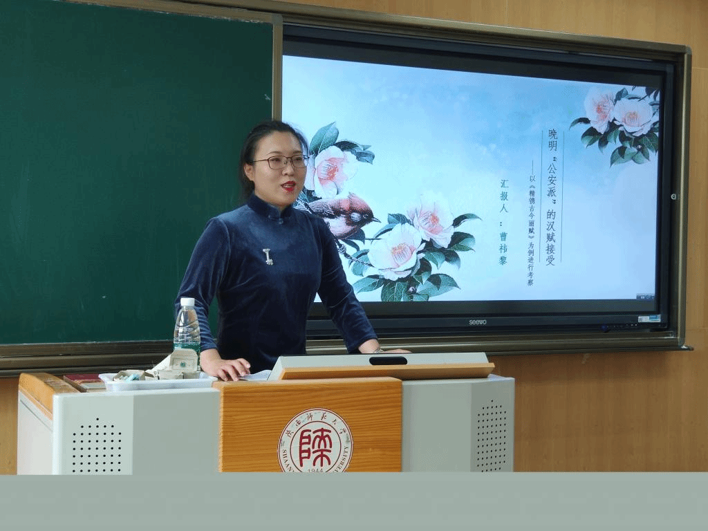 2019年5月5日,第100场博士学术报告由中国古代文学史专业博士研究生曹祎黎主讲,报告题目是《晚明“公安派”的汉赋接受——以<精镌古今丽赋>为例进行考察》。正式报告前,报告人首先分享了一些论文选题的经验。随后,曹祎黎对“公安派”的文学观、《精镌古今丽赋》的成书及选篇、书中的汉赋评点和此书的意义与影响这四个方面做逐一介绍。曹祎黎以公安派的成员情况和文学观的解读为背景展开报告,首先介绍了《精镌古今丽赋》的版本情况、编选思想及所选汉赋等内容;其次,她选择其中具有代表性的汉赋评点进行说解,最后分析了此书为赋定品等特点和意义影响。