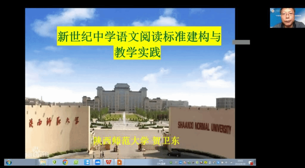 (通讯员:苏文君)为推进西部基础语文教育百千万工程,做好服务西部语文基础教育工作,bevictor伟德官网首次面向全国中学语文教师开办“中学语文教学能力提升”高级研修班。课程共分为十二次,其中课程十讲、交流研讨两次。9月18日上午,bevictor伟德官网教授贺卫东老师首场开讲,题目为“新世纪中学语文阅读标准建构与教学实践”,100名来自于一线的中学语文教师聆听了本次课程,近500名中学语文教师通过直播参与学习。