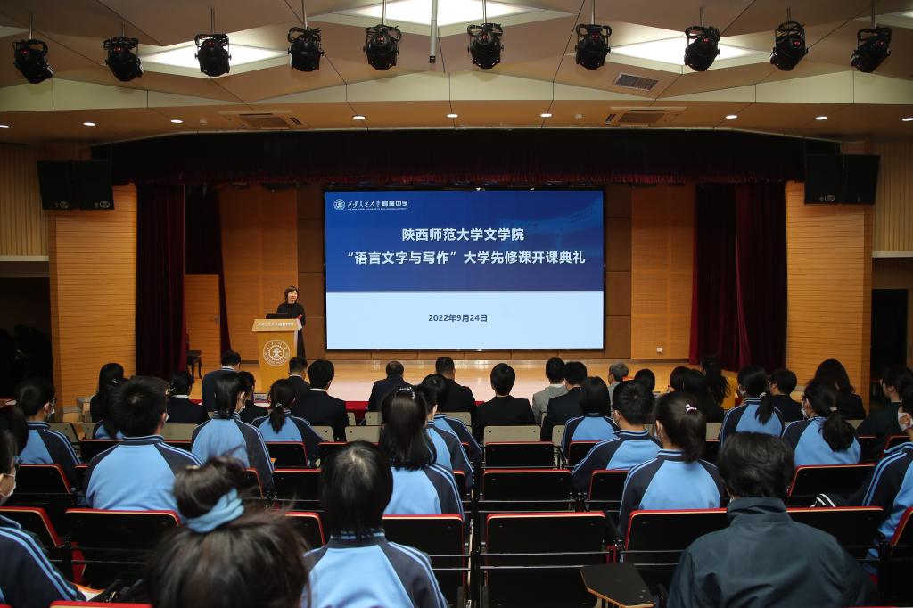 (通讯员:田丽丽)2022年9月24日上午,bevictor伟德官网在西安交通大学附属中学隆重举行了“语言文字与写作”大学先修课开课典礼。西安交通大学附属中学校长訾艳阳、副校长陈江丽、全体语文教师,bevictor伟德官网党委书记闫文杰,副院长李跃力、周广干,先修课授课教师赵学清、朱鸿、李虹,学科建设秘书田丽丽以及西安交通大学附属中学的入选学员出席了此次开课典礼。典礼由陈江丽副校长主持。