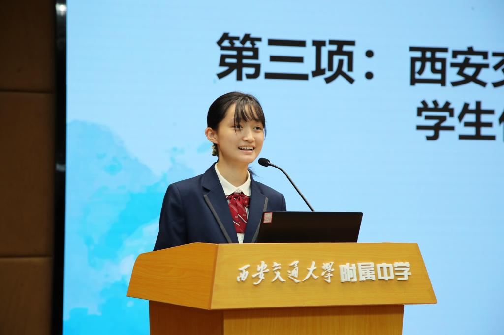 西安交通大学附属中学王梓菡同学作为第一期先修课代表发言,她认为先修课课程内容设计丰富,给中学生带来了一片文学的净土,寄语入选学员在先修课专业老师的指导下,感受文学背后的精神风貌,掌握语言文字理论知识,未来学有所得,回馈文学。