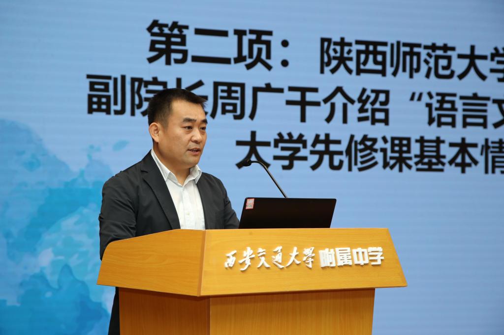 周广干副院长简要介绍了“语言文字与写作”大学先修课的基本情况,他表示此次先修课的开设初心是服务基础教育、普及教育资源,是实现高校与中学协同育人的初步尝试,希望这种前置性课程能够带给学生知识的洗礼、思想的风暴。