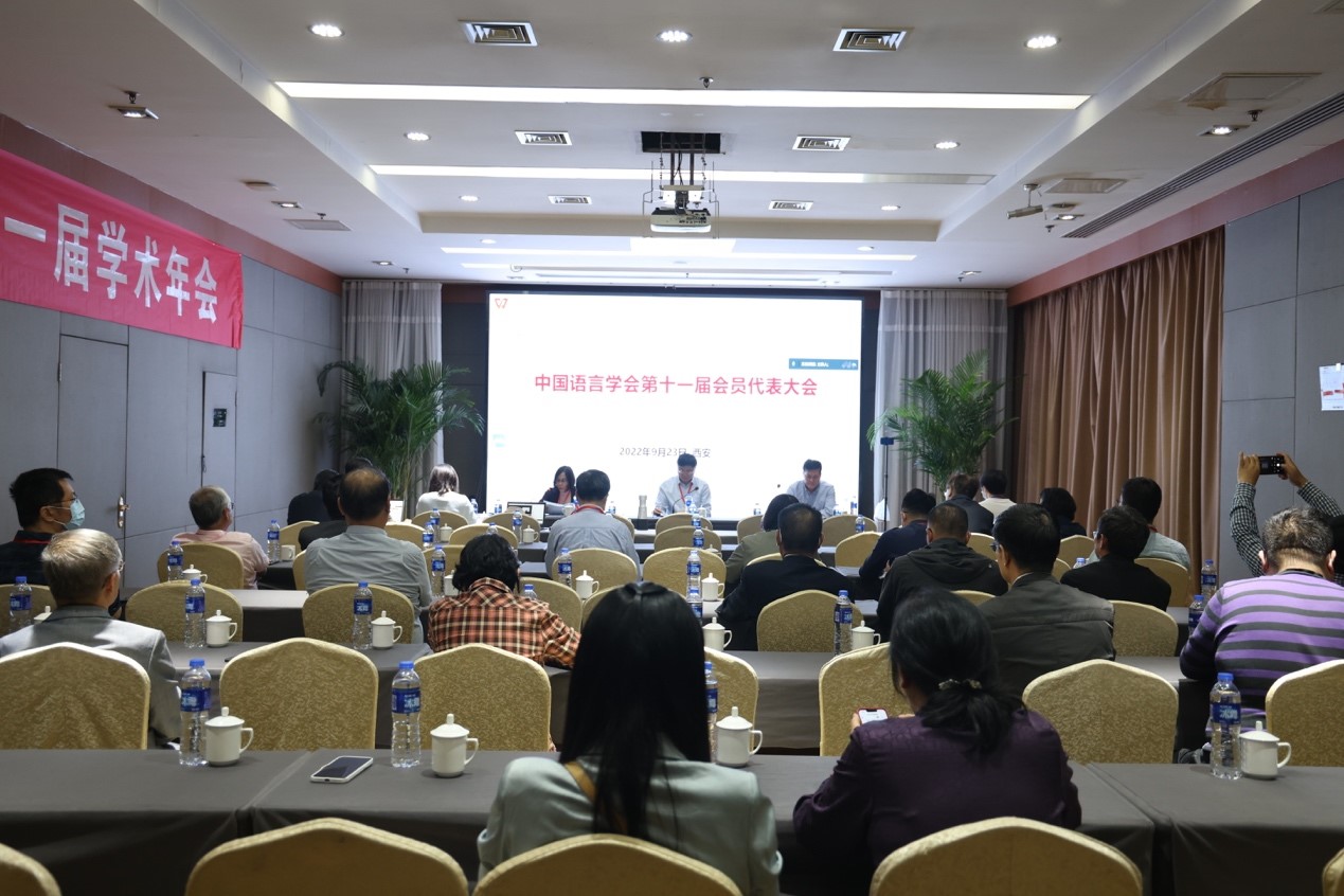 本届年会期间还完成了中国语言学会理事会换届选举工作。9月23日晚,以线下线上相结合的方式召开了中国语言学会第十一届会员代表大会,听取了第十届理事会工作报告,依据选举办法,选出87位学者为中国语言学会第十一届理事会理事。9月24日晚,以线下线上相结合的方式召开了中国语言学会第十一届理事会第一次会议,选举产生中国语言学会第十一届理事会常务理事及主要负责人,听取并讨论中国语言学会四个分支机构的工作报告,审议通过74份入会申请。