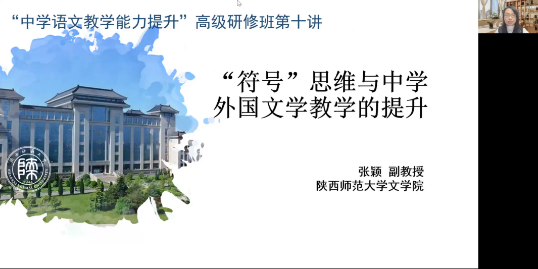 (通讯员:苏文君)2022年12月4日上午,“中学语文教学能力提升”高级研修班系列课程第十讲顺利举办。本次课程由bevictor伟德官网副教授张颖老师主讲,题目为“‘符号’思维与中学外国文学教学的优化”,100名来自于一线的中学语文教师学习了本次课程,200余名中学语文教师通过直播参与学习。