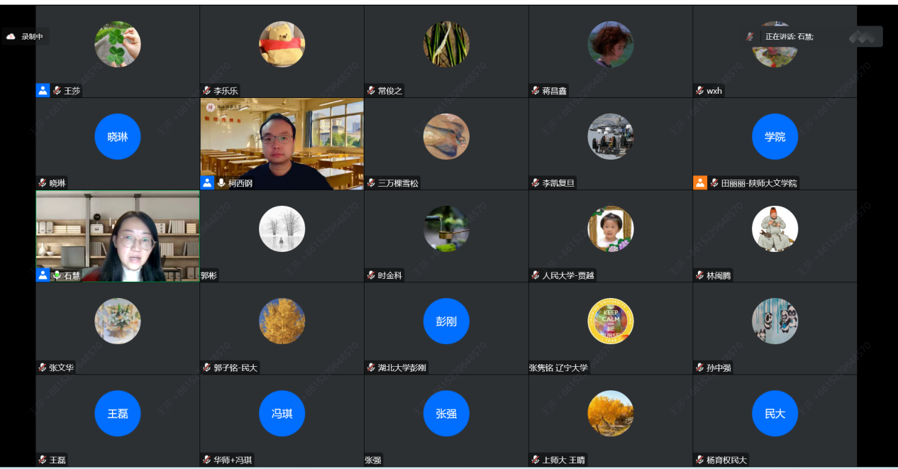随后,与会师生就相关问题展开了热烈讨论。最后,柯西钢教授对此次报告进行了评议与总结。他首先肯定了本报告所采用的研究方法,即共时与历时研究相结合、宏观问题与个案研究相结合、语言历时演变与语言接触、社会语言学等研究视角相结合;然后从揭示官话方言的形成历史与演变脉络,梳理官话次方言之间的互相影响等方面肯定了报告的研究价值;最后期待老师们提出的意见和建议能为石慧老师未来的研究提供方法、视角、材料等层面的帮助,进一步拓展已有研究。