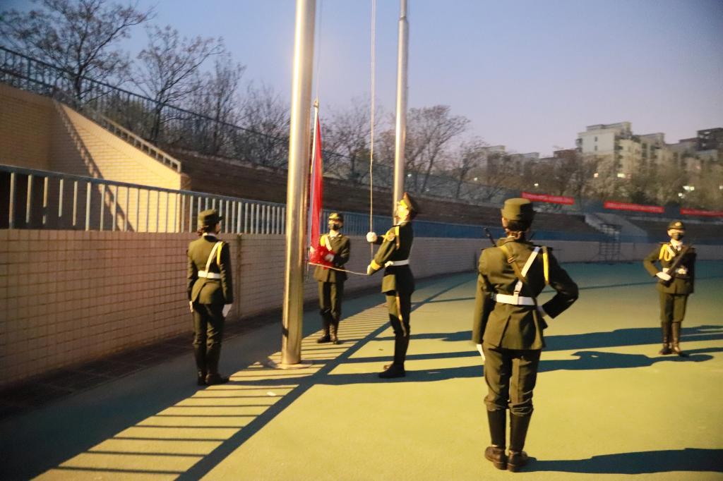 晨曦微露,国旗护卫队护卫国旗昂首阔步走向升旗台,五星红旗伴随着朝阳冉冉升起,全体师生庄严肃立,伴随音乐颂唱国歌。2021级本科生董斯文以“传承雷锋精神,争做文明大学生”为题作国旗下演讲;李佳玲、张杉杉、丁怡然、陈乐盈等学生代表进行了集体朗诵,鼓舞所有同学提升修养,勇攀高峰,磨砺意志,用青春向时代作答。