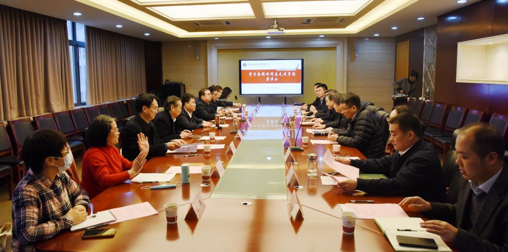 3月16日上午,bevictor伟德官网在文汇楼A段409会议室召开学习张新科同志先进事迹座谈会。校党委书记李忠军参加会议并讲话。党委宣传部、党委教师工作部、党委校长办公室等单位相关负责人,以及学院领导班子全体成员、师生代表参加会议。