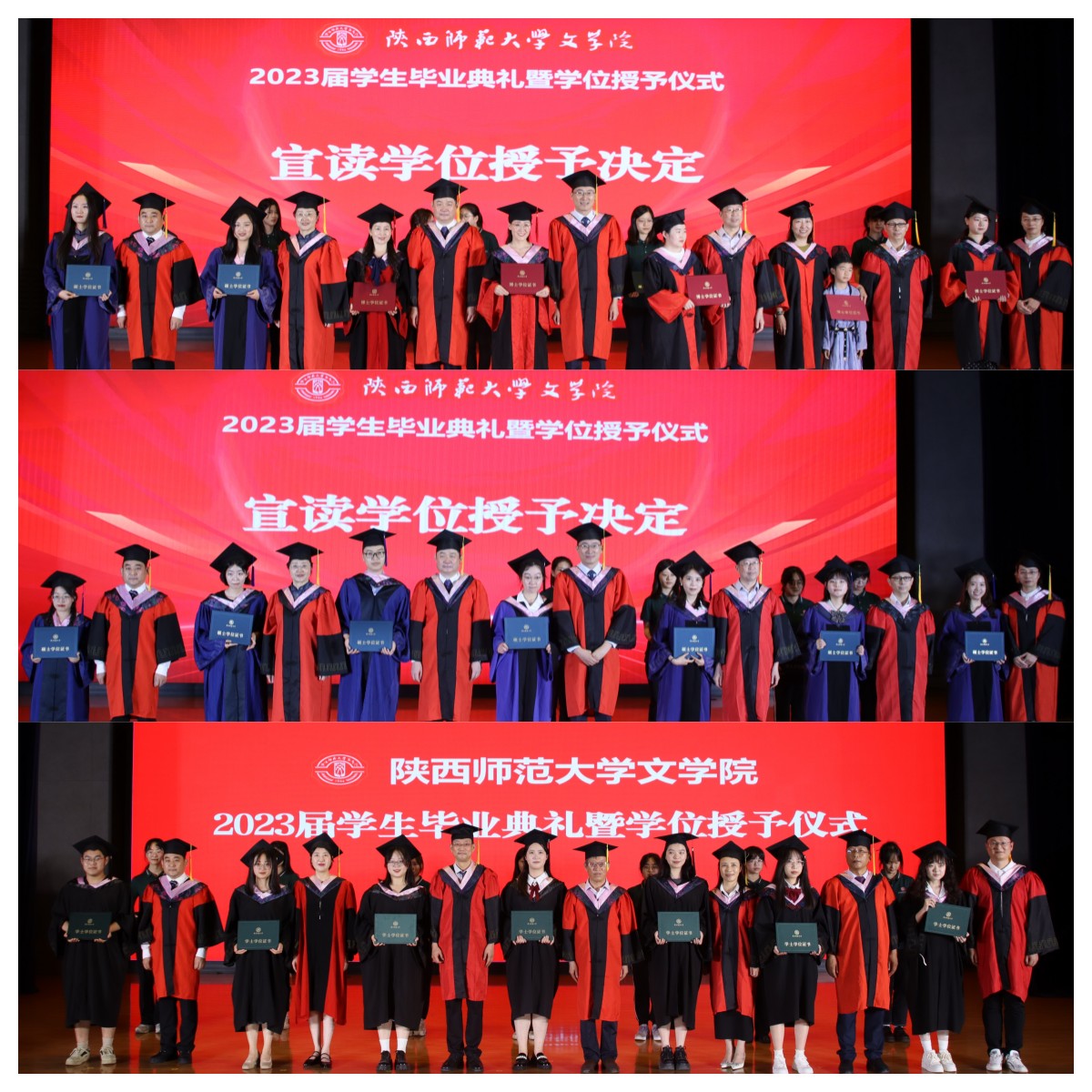 学位授予仪式由副院长赵文主持,院长苏仲乐宣读学位授予决定。在座教师代表为2023届毕业生颁授学位。在悠扬的歌声中,文学院2023届毕业典礼暨学位授予仪式圆满落幕。