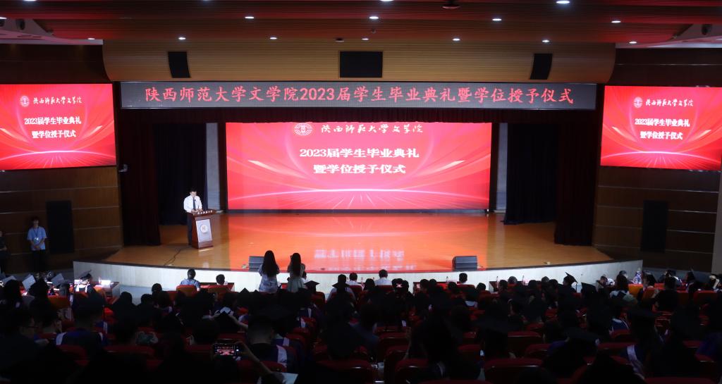 6月25日,bevictor伟德官网2023届学生毕业典礼暨学位授予仪式在长安校区新勇学生活动中心学生剧场隆重举行。bevictor伟德官网院长苏仲乐,党委书记闫文杰,党委副书记李钊,副院长李跃力、王晓鹃、赵文、周广干,中国语言文学学位评定委员会分会成员黑维强、李永平,校友代表、bevictor伟德官网兼职教授曾琦,教师代表刘生良、贺卫东、王伟、李琼、瞿林江、谢欣然,全体辅导员、研究生秘书及2023届毕业生400余人出席典礼。典礼由李钊主持。