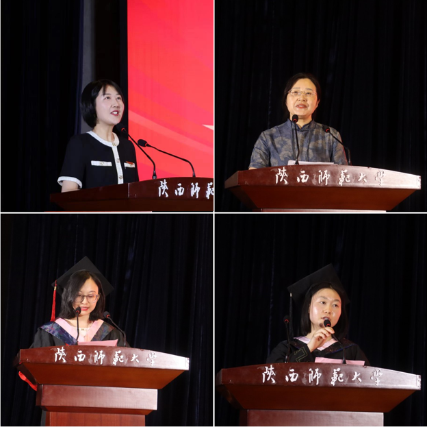 我校兼职教授、原中文系1987级校友、现西北工业大学附属中学正高级语文教师曾琦发言。她分享了自己的从教经历。毕业后三十余年,她始终将人生坐标锚定在助力学生成长的轨道上,坚持用爱帮助学生收获知识、成为有鲜明个性的人。她寄语全体毕业生用坚持、热爱给自己的时光赋予力量,在时光中蓄力,在无悔中前行,满怀热爱,不负未来。