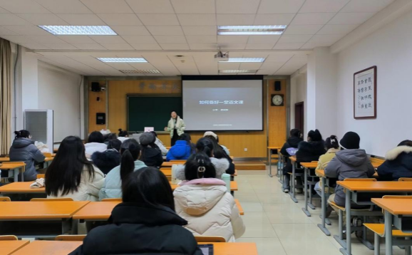 报告最后,潘老师对本讲内容做了回顾和总结,她认为在“如何准备”和“如何讲好”中间,备课更加重要,因此老师要先在脑子里勾画出蓝图,清楚整节课的逻辑框架、最终要达到的效果、呈现方式以及需要的资源等。潘老师还特别强调,作为老师不能过多依赖PPT,PPT只是一个辅助的手段,有逻辑性的内容才最关键。最后,潘老师认为一名合格的语文老师不能光会讲课还要研究考试真题,把握命题规律,这样教学才更能得心应手,对学生的指导才更有针对性。潘老师的报告幽默风趣,她的教师成长经历分享对同学们的职业规划和成长具有独特价值。