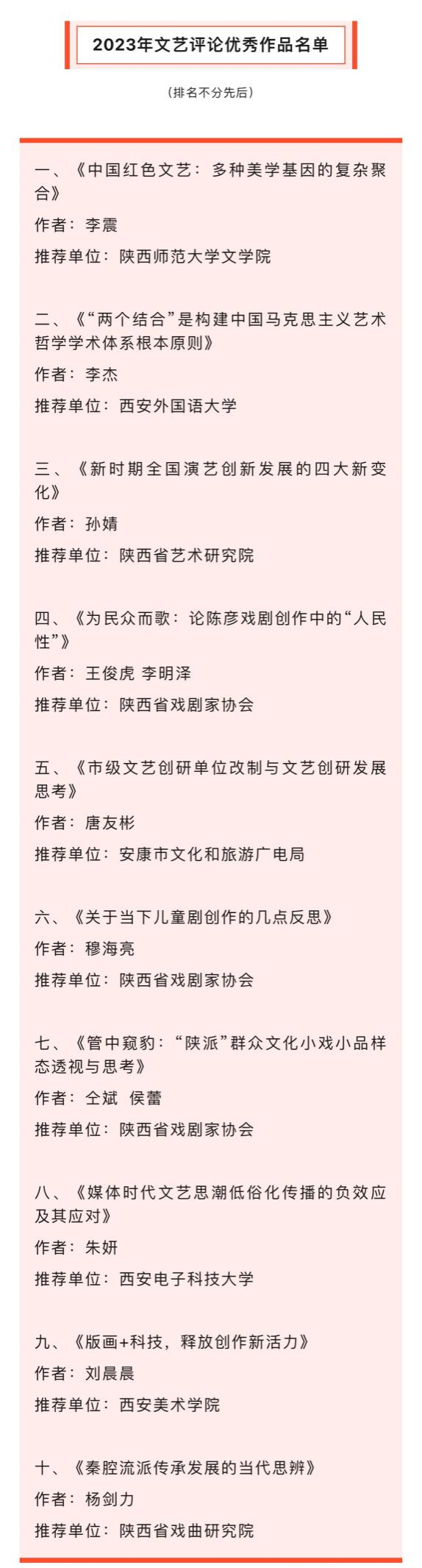 2月6日,在国家文化和旅游部2023年优秀文艺评论征集活动中,bevictor伟德官网李震教授的论文《中国红色文艺:多种美学基因的复杂聚合》由陕西省文化和旅游厅组织专家评选为2023年文艺评论优秀作品,并被选送国家文化和旅游部。