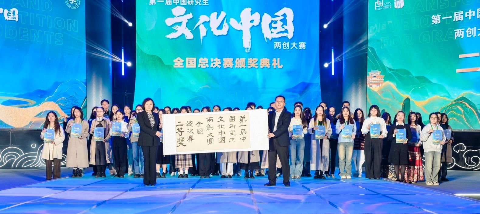 11月8日至10日,由教育部学位管理与研究生教育司指导,中国学位与研究生教育学会和中国科协青少年科技中心主办的第一届中国研究生“文化中国”两创大赛全国总决赛在山东大学中心校区举行,共有来自75所高校的198个作品晋级。经过激烈角逐,我院2023级中国古代文学专业研究生陈宇飞的参赛作品《八棱碑》,2023级现当代文学专业研究生谭晓倩的参赛作品《天火之舞》获全国二等奖。