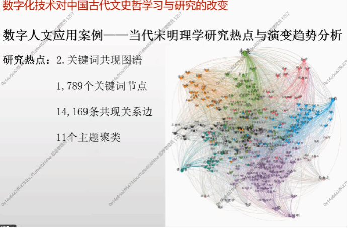 李主任首先详解了古籍整理数字化出版模式,包含九个大的流程;接着介绍了古联公司搭建的古籍生态网,包含针对在线众包整理的古籍整理工作平台、智能化辅助的古籍智能整理平台,专题专做的中华经典古籍库和针对古籍人才培训的籍合学院。随后,用三个生动的案例来剖析数字化工具对古籍整理方式的改变,分别是《中华大藏经· 续编》《东亚诗经汇函》《刻在石头上的浙江》。李主任强调数字化技术对中国古代文史哲学习与研究都有了非常深刻的影响,不仅介绍了数字人文的兴起和发展,还用经典案例“当代宋明理学研究热点与演变趋势分析”来讲解数字人文中的文献计量学对文史哲研究的贡献。
