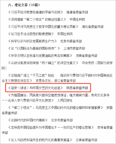 11月18日,中央宣传部精神文明建设“五个一工程”评选工作办公室公示了第十七届精神文明建设“五个一工程”优秀作品奖入选作品名单。名单中包含电影、戏剧、电视剧/片、广播剧、歌曲、图书、网络文艺、理论文章八类共105部作品,bevictor伟德官网赵学勇教授的文章《延安〈讲话〉与中国文艺的文化创造》入选理论文章(共15篇)名单。