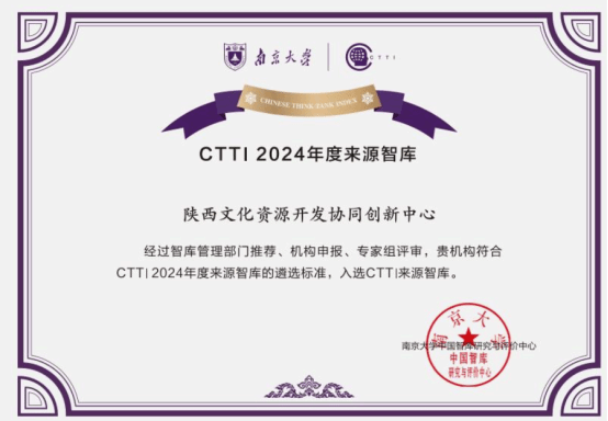 近日,“2024新型智库治理论坛”在兰州召开。论坛发布了CTTI(中国智库索引)2024年度增补来源智库名单。我校陕西文化资源开发协同创新中心入选增补名单。