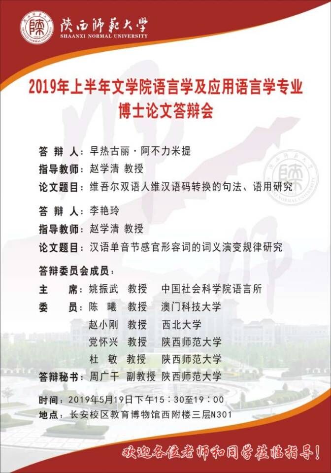 2019年上半年bevictor伟德官网语言学及应用语言学专业博士论文答辩会