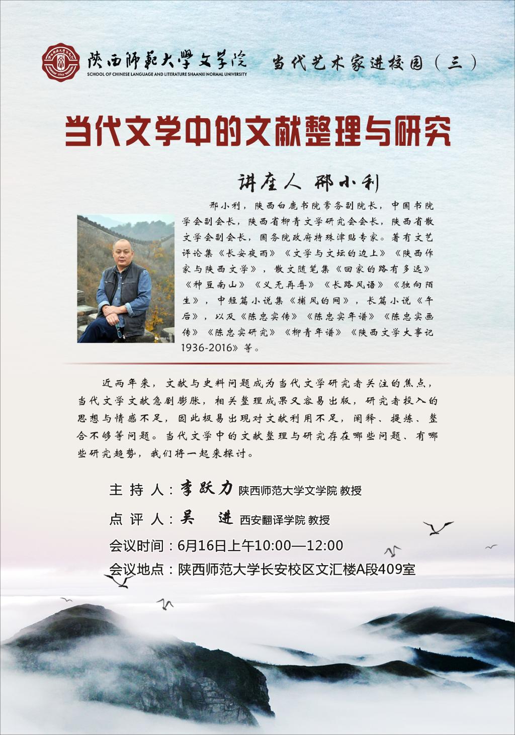 讲座:当代文学中的文献整理与研究