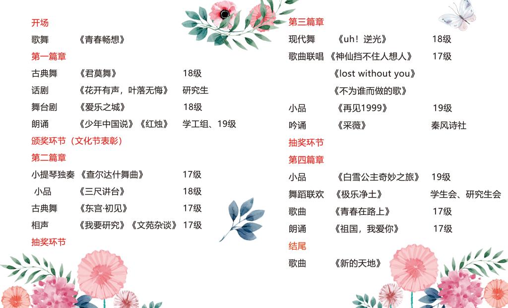1.晚会入场时间为18:00,请参加晚会的师生在指定时间内有序入场。